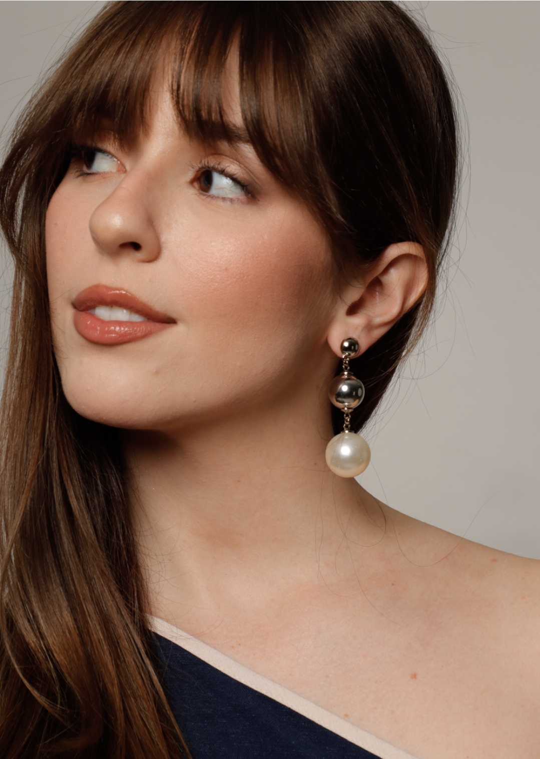 Brinco perola e bola ródio