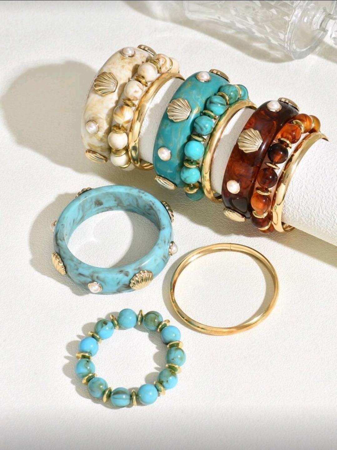 Trio de Bracelete Azul Summer Concha Esmaltado